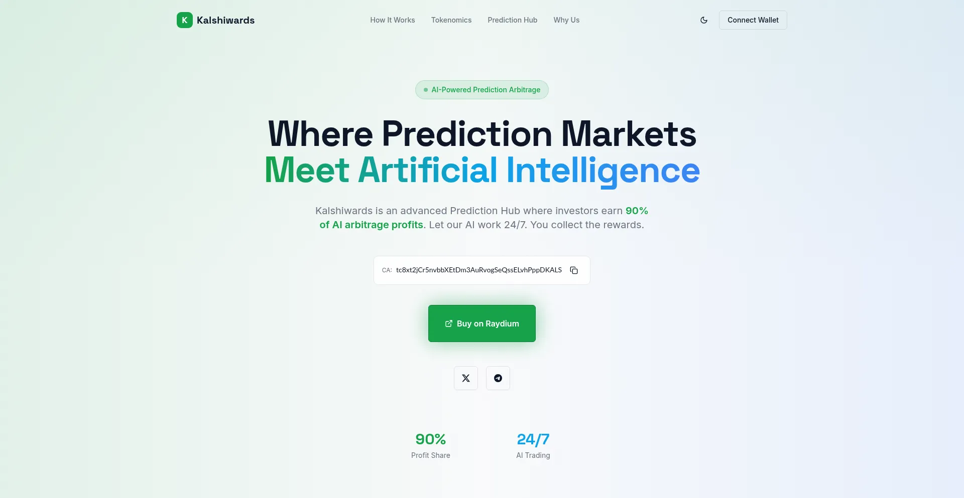 Kalshiwards is an advanced Prediction Hub where investors earn 90% of AI arbitrage profits. Hold $KLRDS tokens and receive automated profit sharing from real prediction market o...