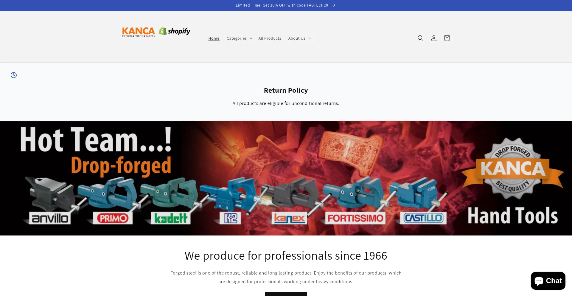 Our analyzer determines that website kancahandtools.com is using Shopify CMS. Shopify is a popular e-commerce platform, powering around 4.4% of websites globally.