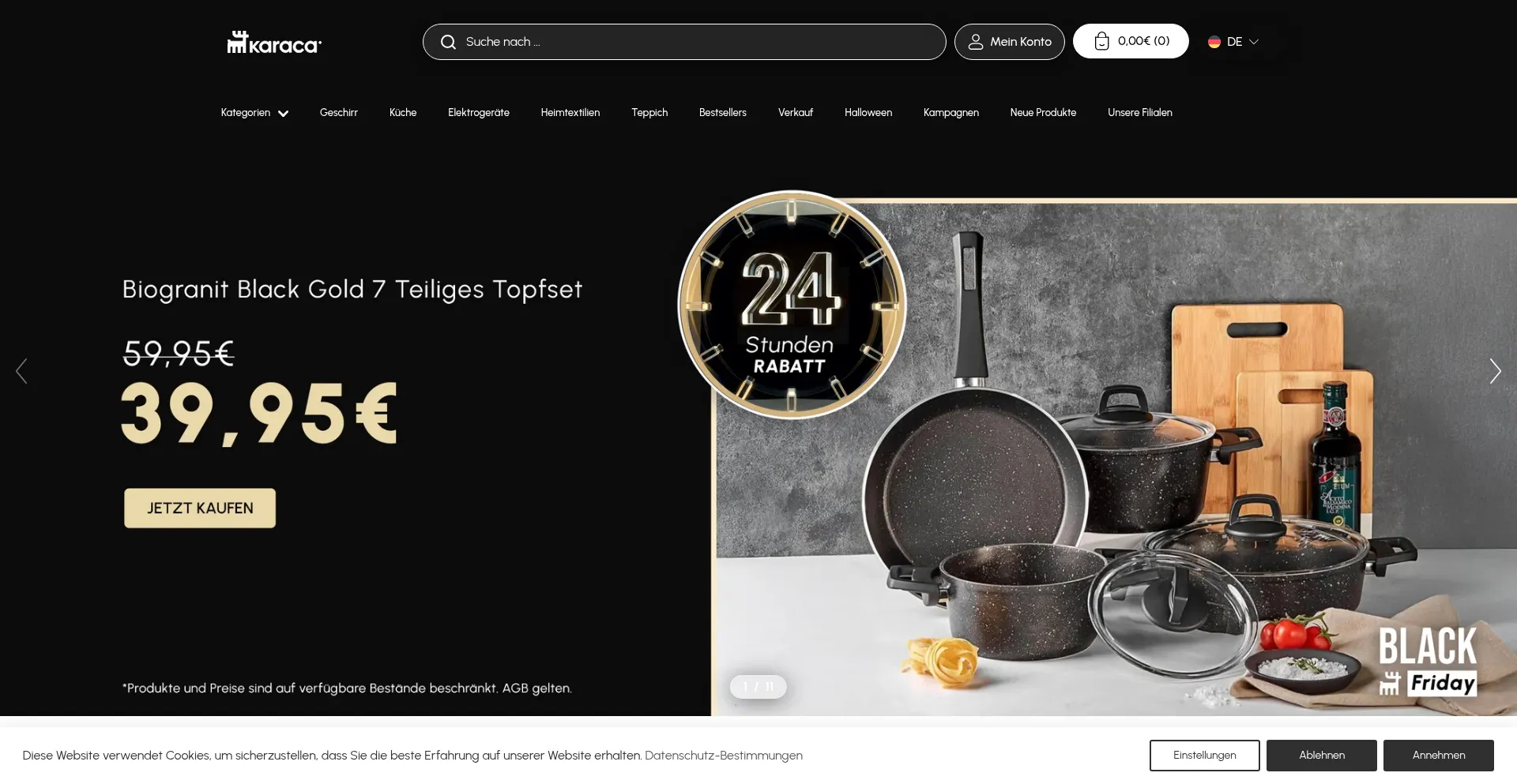Analysis indicates that karaca.com.de operates as an e-commerce platform facilitating online transactions for goods or services. The website implements shopping cart functionality, payment processing systems, and product catalog features typical of commercial retail operations.