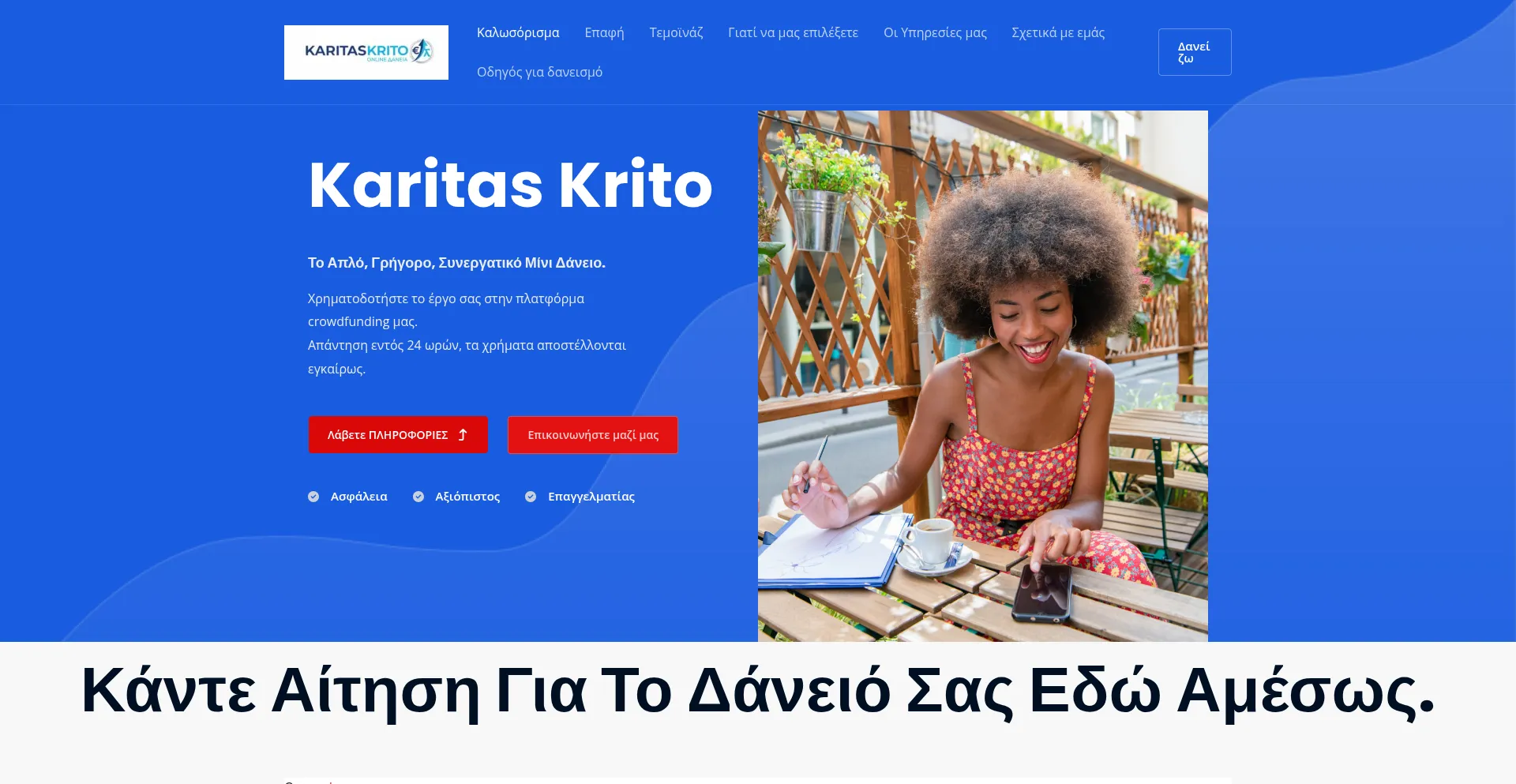karitas kritoΤο απλό, γρήγορο, συνεργατικό μίνι δάνειο. Χρηματοδοτήστε το έργο σας στην πλατφόρμα crowdfund...