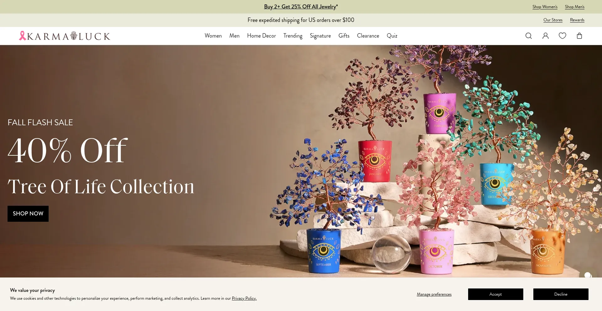 Analysis indicates that karmaandluck.com operates as an e-commerce platform facilitating online transactions for goods or services. The website implements shopping cart functionality, payment processing systems, and product catalog features typical of commercial retail operations.