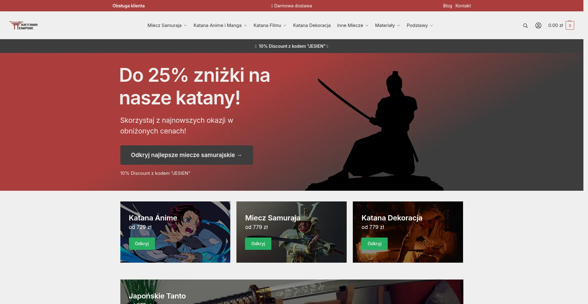 The katanaempire.pl website employs search engine optimization (SEO) techniques to improve its visibility and ranking in search engine results pages (SERPs).