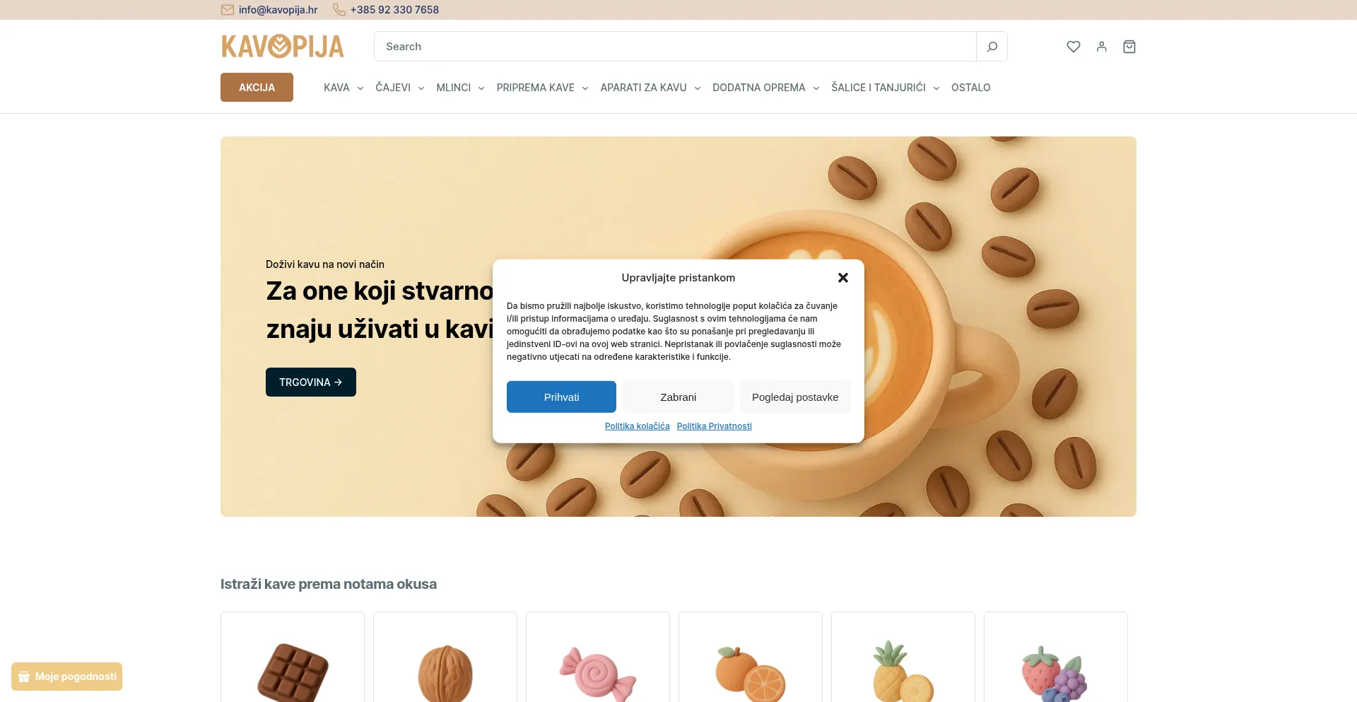 Analysis indicates that kavopija.hr operates as an e-commerce platform facilitating online transactions for goods or services. The website implements shopping cart functionality, payment processing systems, and product catalog features typical of commercial retail operations.