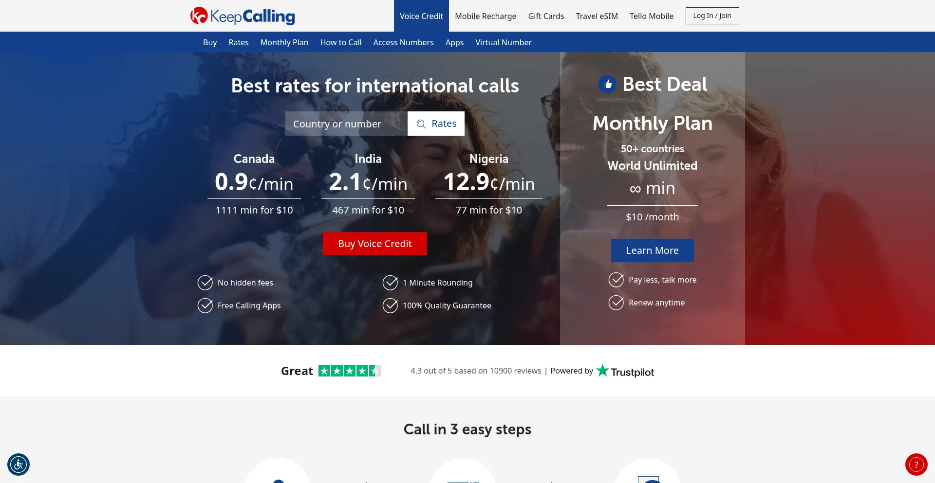 keepcalling.com has a good Trustpilot score (4.3) based on 10900 reviews, indicating a high level of trust from customers. It is a good sign of legitimacy!