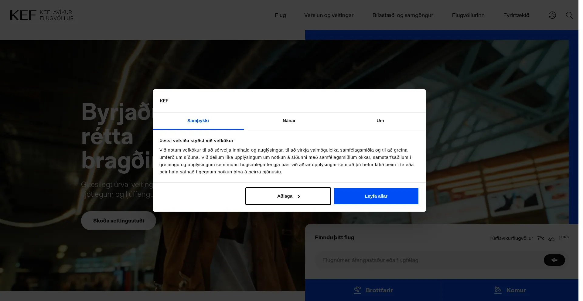 The website implements cookie consent mechanisms in compliance with privacy regulations such as GDPR or CCPA. This demonstrates that kefairport.is adheres to data protection standards and provides users with control over personal data collection practices.