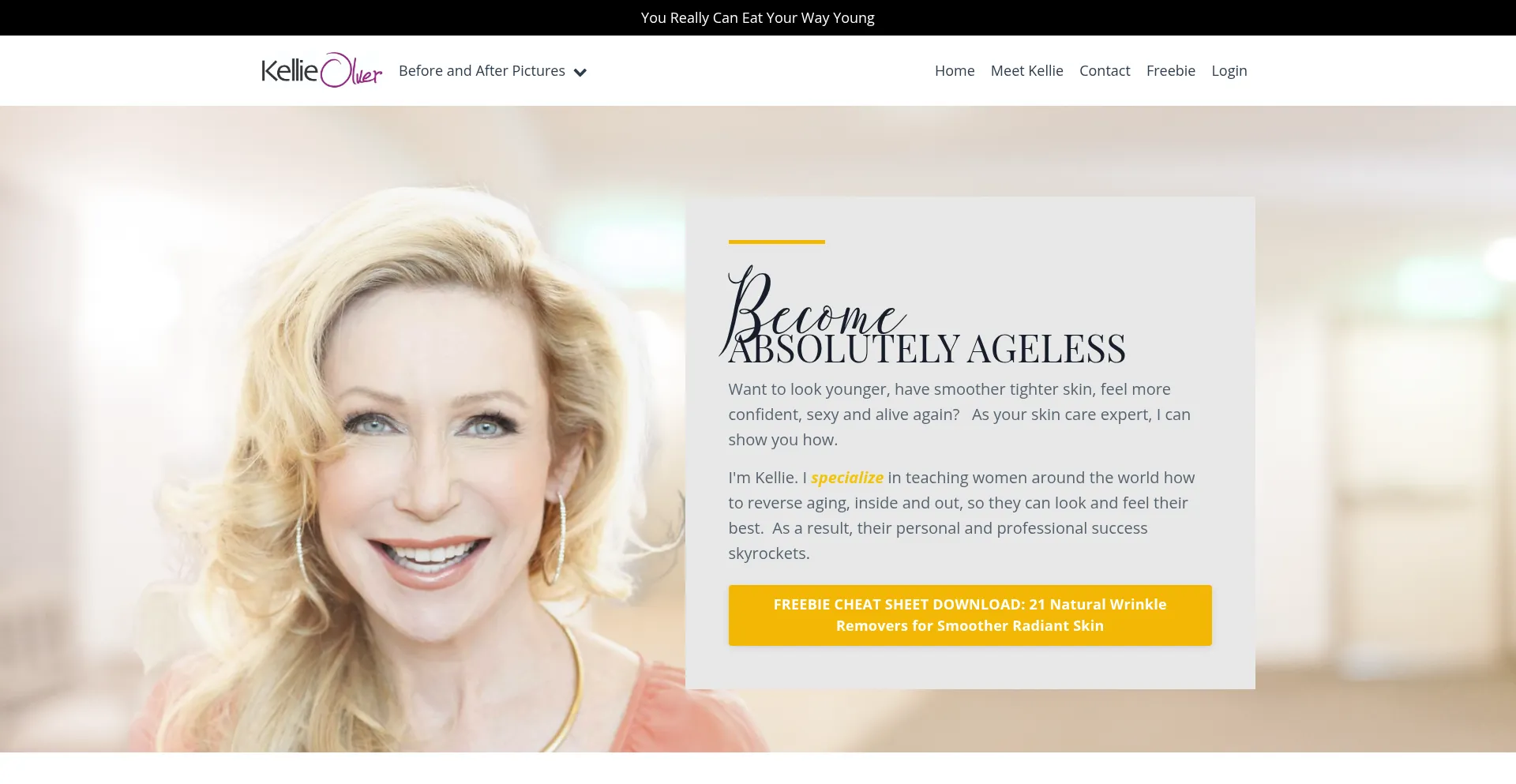 Kellie Olver, Reverse Aging Success Strategist and Skin Care Expert, empowers women to look younger with collagen, skin care, nutrition, and courses."