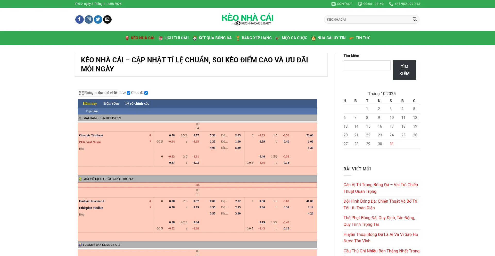Kèo Nhà Cái cập nhật thông tin bóng đá, lịch thi đấu, kết quả, mẹo soi kèo và tin tức thể thao chuẩn xác, minh bạch, giao diện dễ thao tác,...