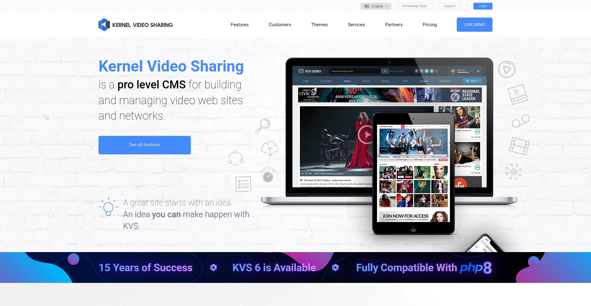 Kernel Video Sharing is a pro level video content management and community site engine. With KVS, you can launch video-based sites of virtually any kind: tubes, tube site networ...
