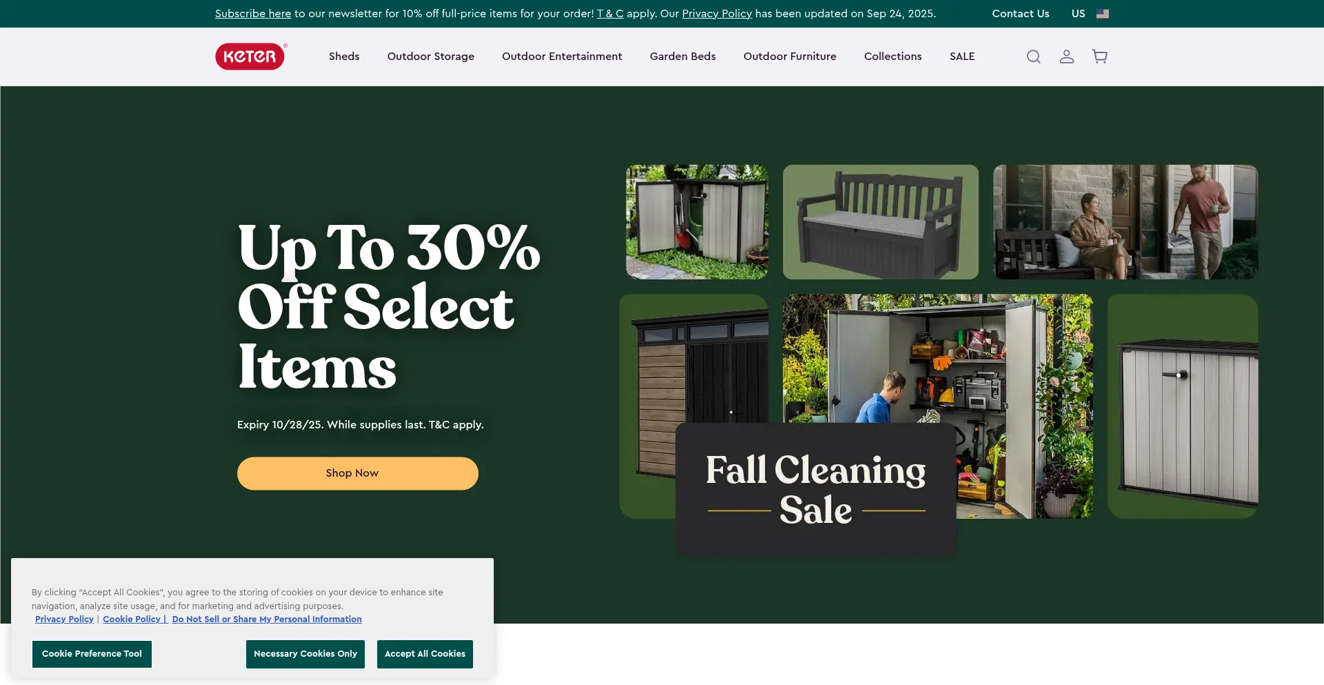 The website implements cookie consent mechanisms in compliance with privacy regulations such as GDPR or CCPA. This demonstrates that keter.com adheres to data protection standards and provides users with control over personal data collection practices.
