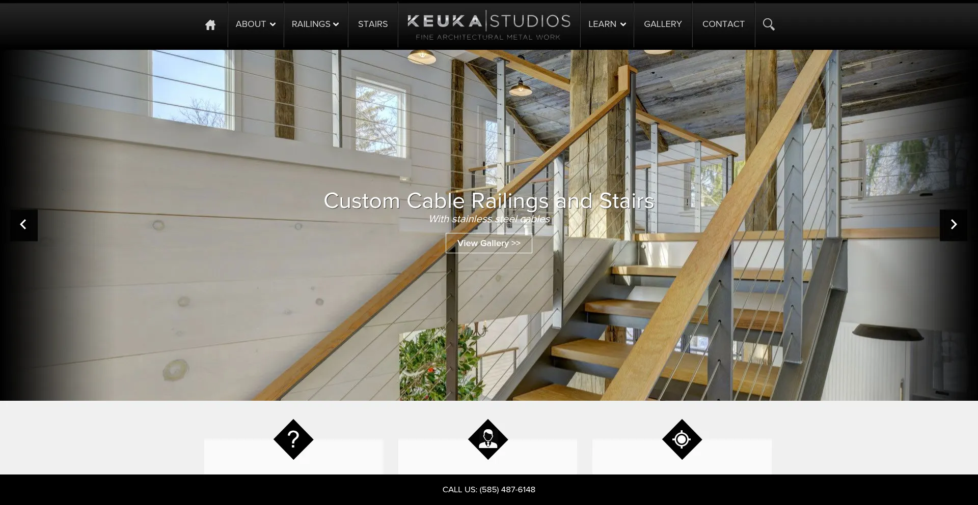 Cable Railings and Stairs, custom designed and manufactured for residential or commercial buildings. Shipped to you. Contact 585-487-6148