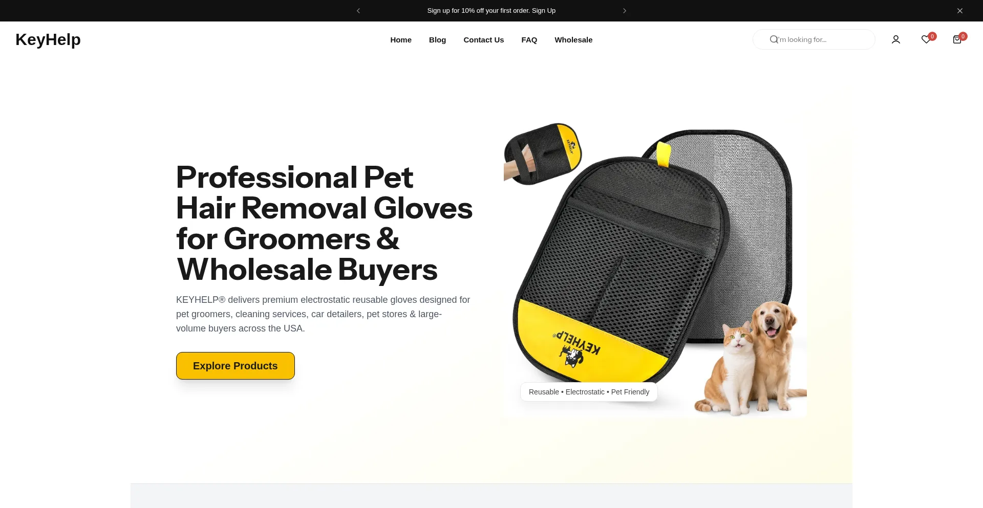 KEYHELP® delivers premium electrostatic reusable gloves designed for pet groomers, cleaning services, car detailers, pet stores & large-volume buyers
