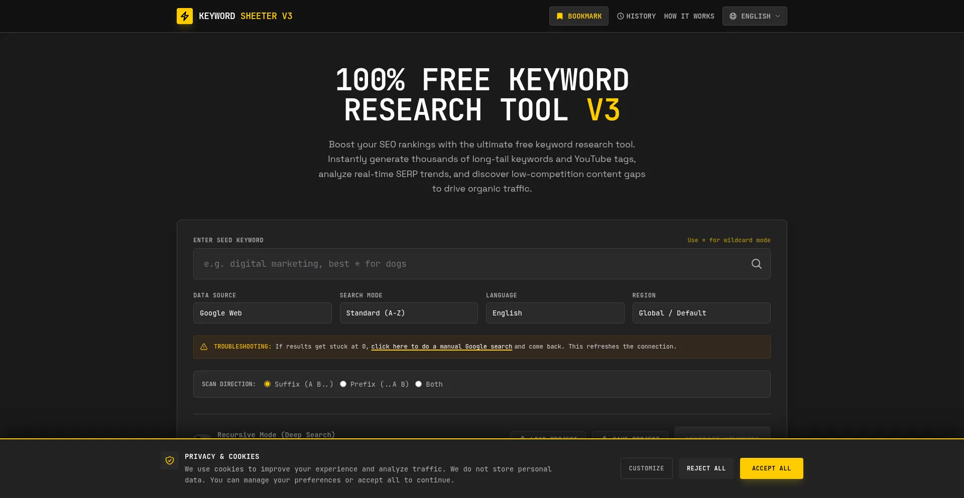100% Free Keyword Research Tool | Keyword Sheeter V3