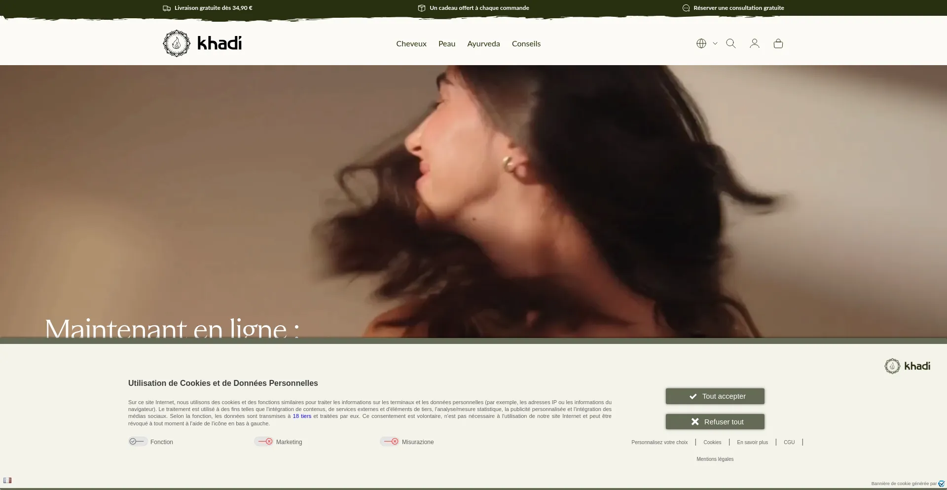 Analysis indicates that khadi.fr operates as an e-commerce platform facilitating online transactions for goods or services. The website implements shopping cart functionality, payment processing systems, and product catalog features typical of commercial retail operations.