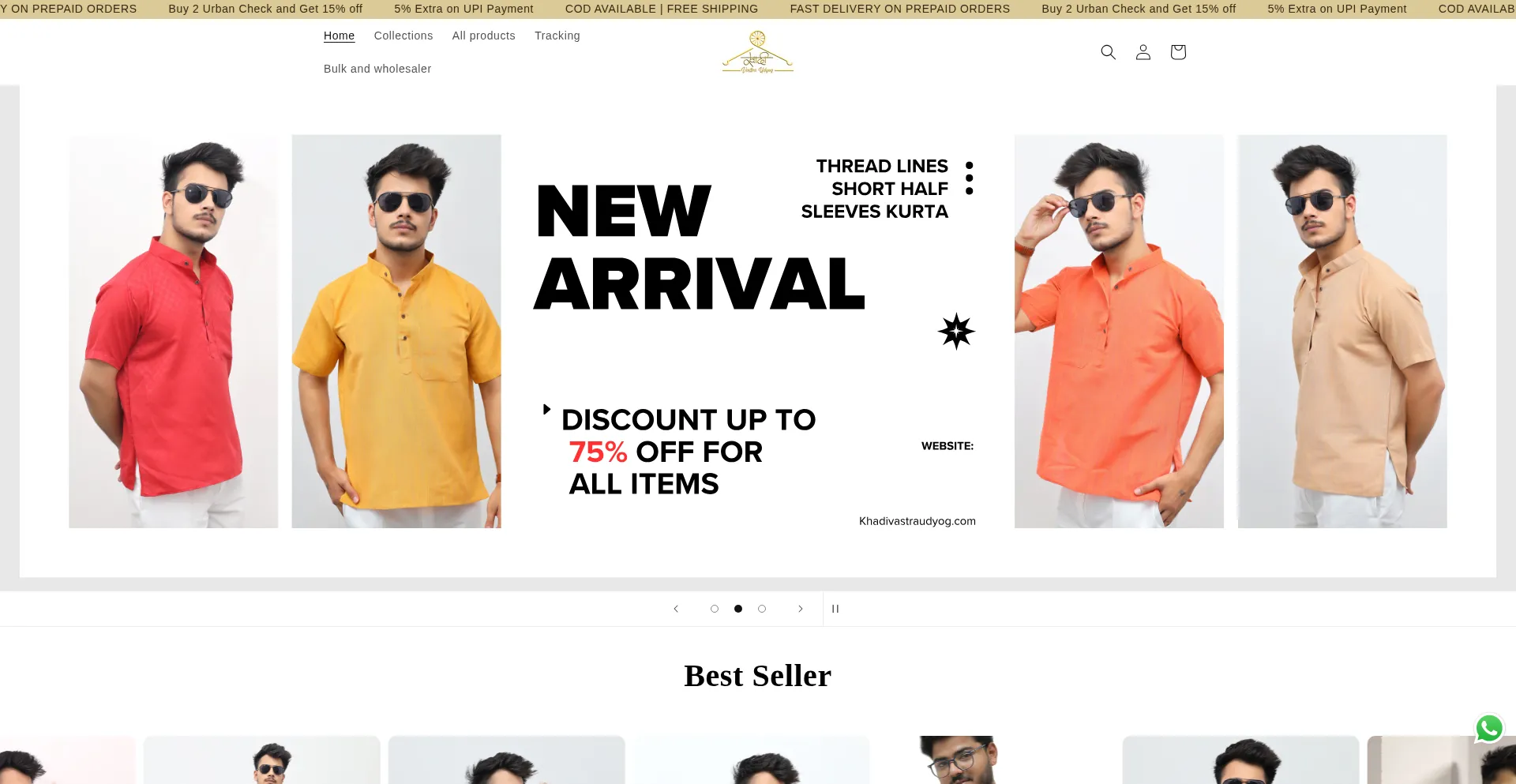 KHADI VASTRA UDYOG is an online store for men’s pure khadi apparel, offering short kurtas, pants, and pyjamas in modern styles. We ship across India with free delivery, COD, a...