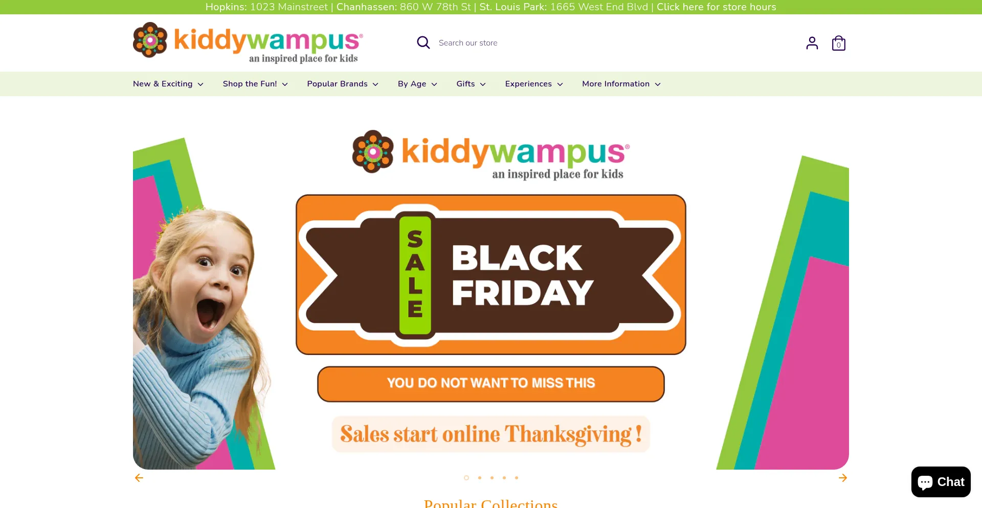 kiddywampus is a toy store with two locations in Hopkins and Chanhassen Minnesota. Visit our toy stores in person or online to find the best selection of toys.