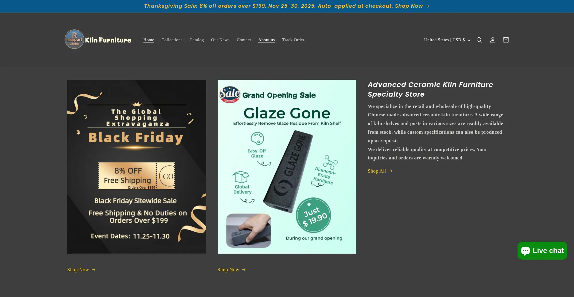 Analysis indicates that kilnshelves-sic.com operates as an e-commerce platform facilitating online transactions for goods or services. The website implements shopping cart functionality, payment processing systems, and product catalog features typical of commercial retail operations.