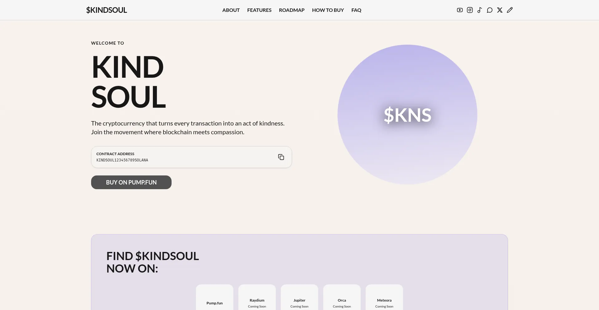 Analysis reveals that kindsoul.world displays social media icons or links that do not connect to legitimate social media profiles. This deceptive practice is commonly employed to create false legitimacy and represents a significant indicator of fraudulent intent requiring immediate caution.