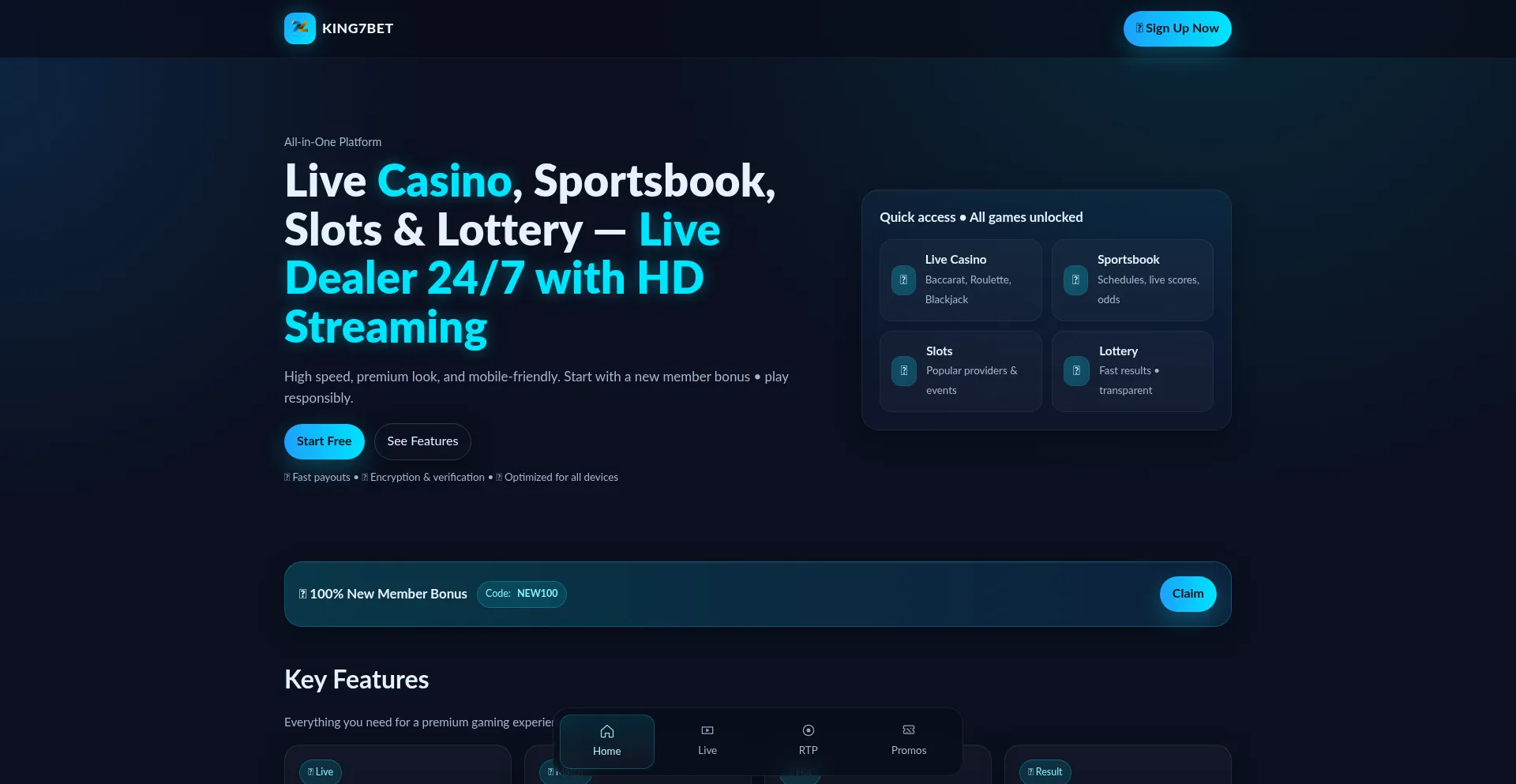 KING7BET | Live Casino 24/7, Sportsbook & Slots — Fast Payouts & Mobile-Friendly
