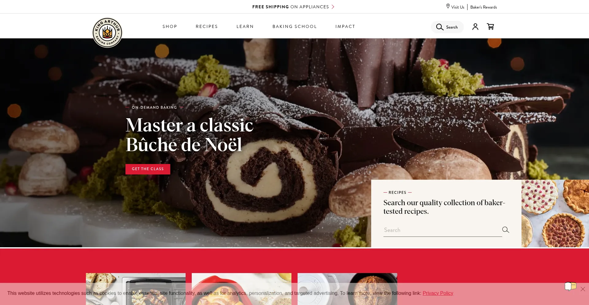 Analysis indicates that kingarthurbaking.com operates as an e-commerce platform facilitating online transactions for goods or services. The website implements shopping cart functionality, payment processing systems, and product catalog features typical of commercial retail operations.