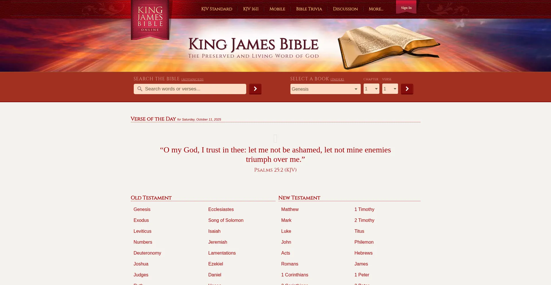 King James Bible Online: Authorized King James Version (KJV) of the Bible- the preserved and living Word of God. Includes 1611 KJV and 1769 Cambridge KJV.