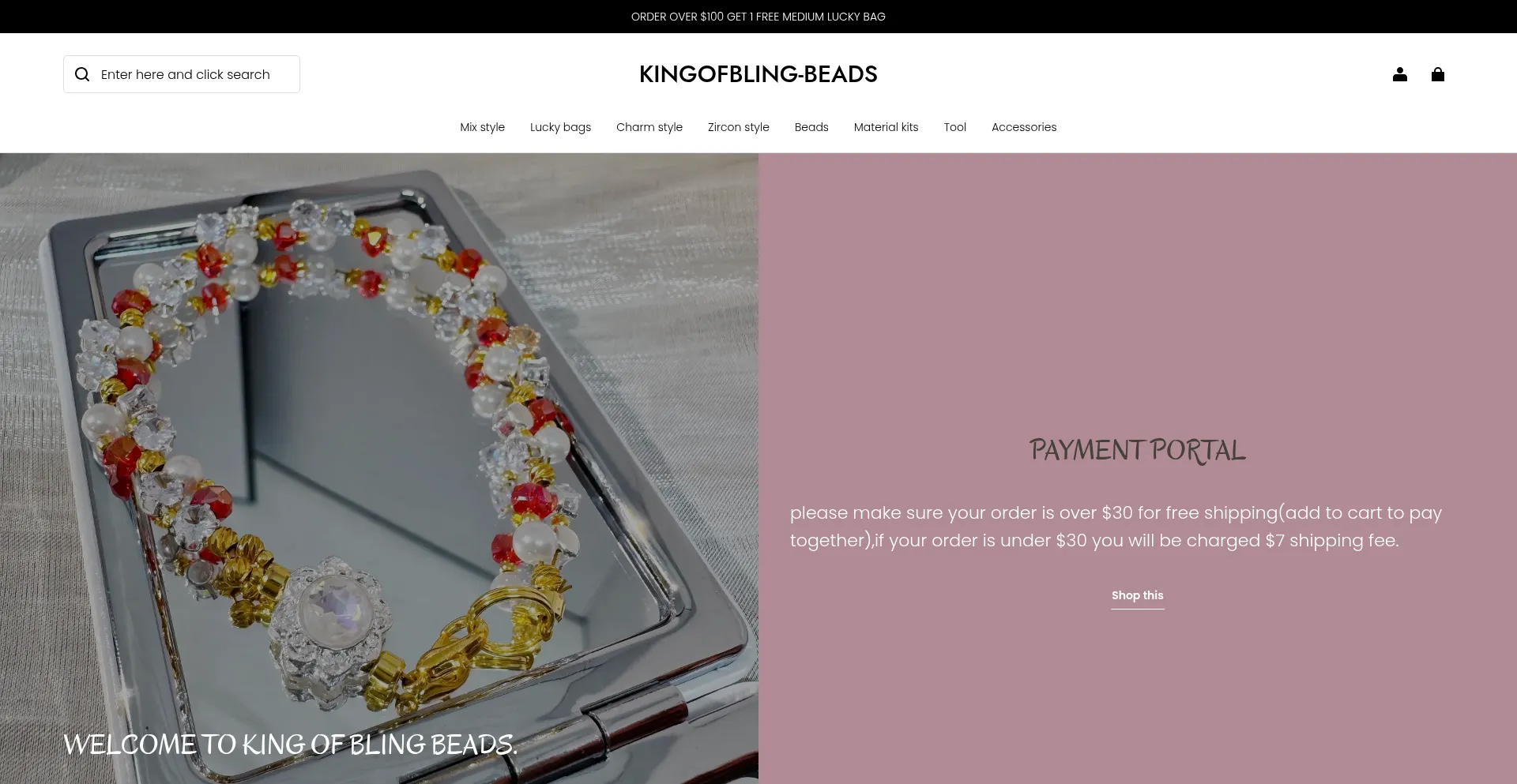 Analysis indicates that kingofbling-beads.com operates as an e-commerce platform facilitating online transactions for goods or services. The website implements shopping cart functionality, payment processing systems, and product catalog features typical of commercial retail operations.