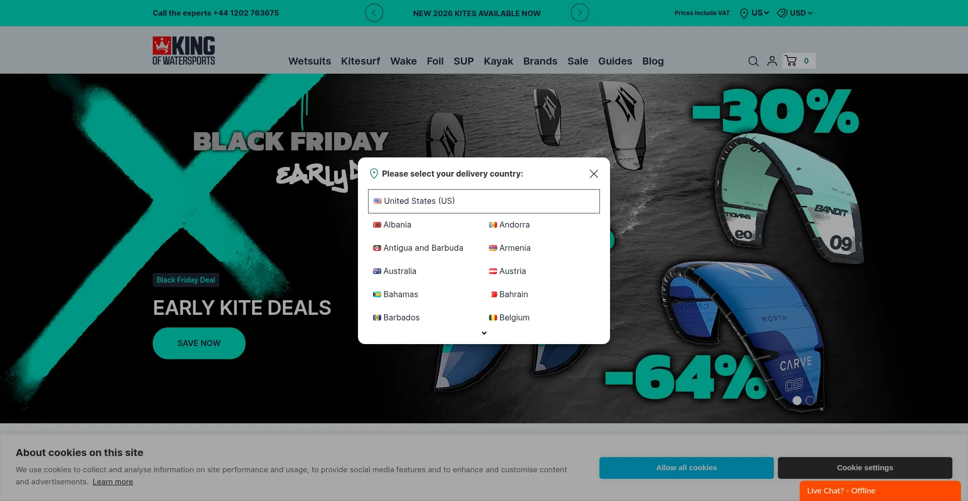 Shop King of Watersports — the UK’s largest kitesurf, wing foil & wakeboarding store. Cabrinha, Duotone, F-ONE, North & more. Expert advice & fast UPS delivery.