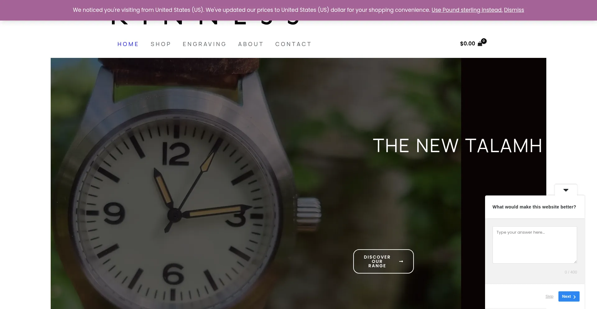 Analysis indicates that kinnesswatches.com operates as an e-commerce platform facilitating online transactions for goods or services. The website implements shopping cart functionality, payment processing systems, and product catalog features typical of commercial retail operations.