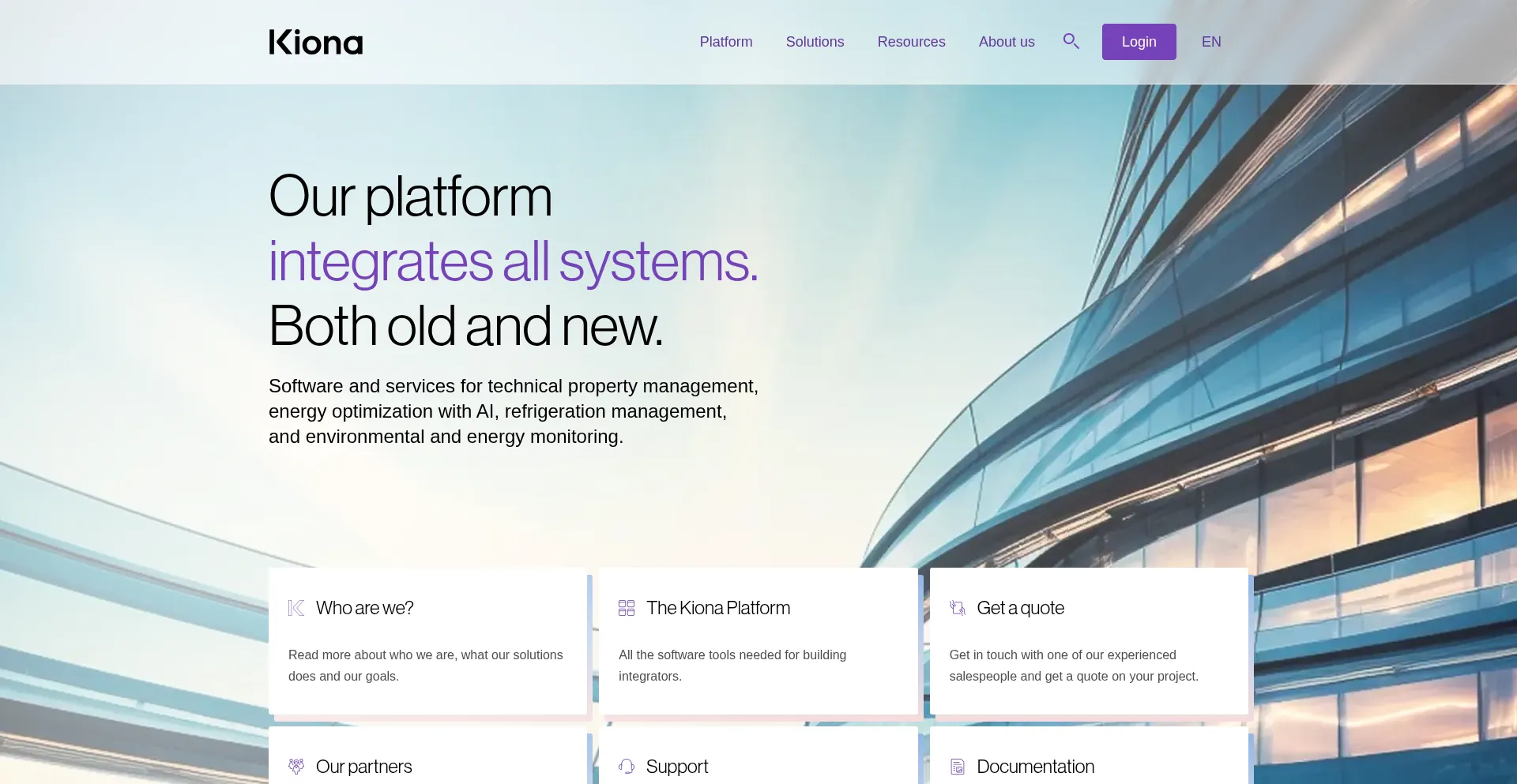 Kiona offers solutions for technical building management, energy efficiency, refrigeration, and environmental and energy monitoring.