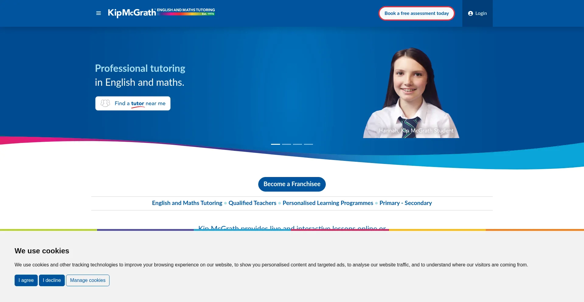 The website implements cookie consent mechanisms in compliance with privacy regulations such as GDPR or CCPA. This demonstrates that kipmcgrath.co.uk adheres to data protection standards and provides users with control over personal data collection practices.