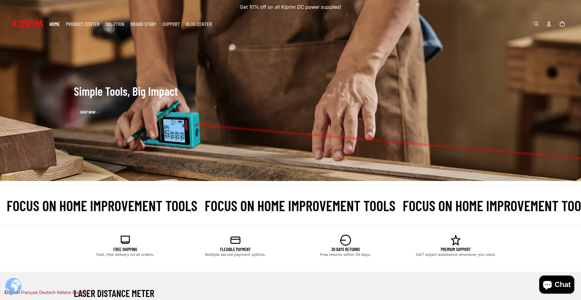 The kiprim.com website utilizes free e-commerce platform solutions, which may indicate cost-conscious operations but could also suggest limitations in security features, customer support, or advanced functionality compared to enterprise-grade solutions.