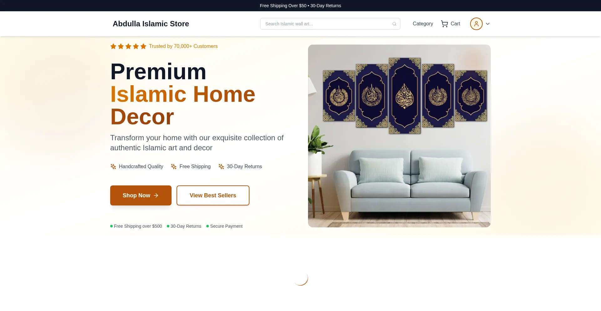 Premium Abdulla Islamic Store, Home Decor, and Prayer Items - Over 70,000 Homes Adorned