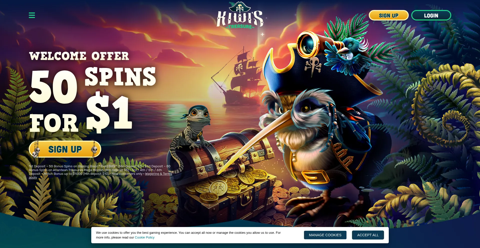 Discover Kiwi's Treasure Casino, one of the best online casinos NZ has to offer. Get 50 spins for just $1 and explore top games in a secure environment.