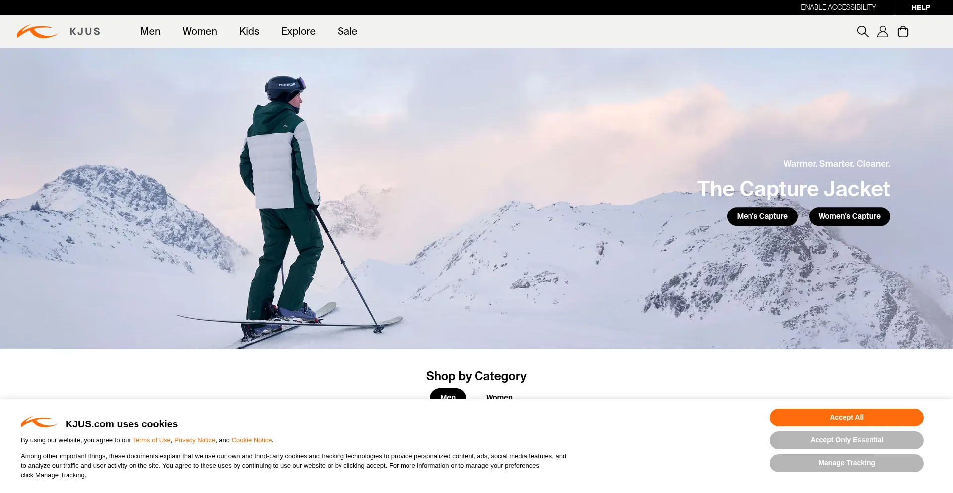 The website implements cookie consent mechanisms in compliance with privacy regulations such as GDPR or CCPA. This demonstrates that kjus.com adheres to data protection standards and provides users with control over personal data collection practices.