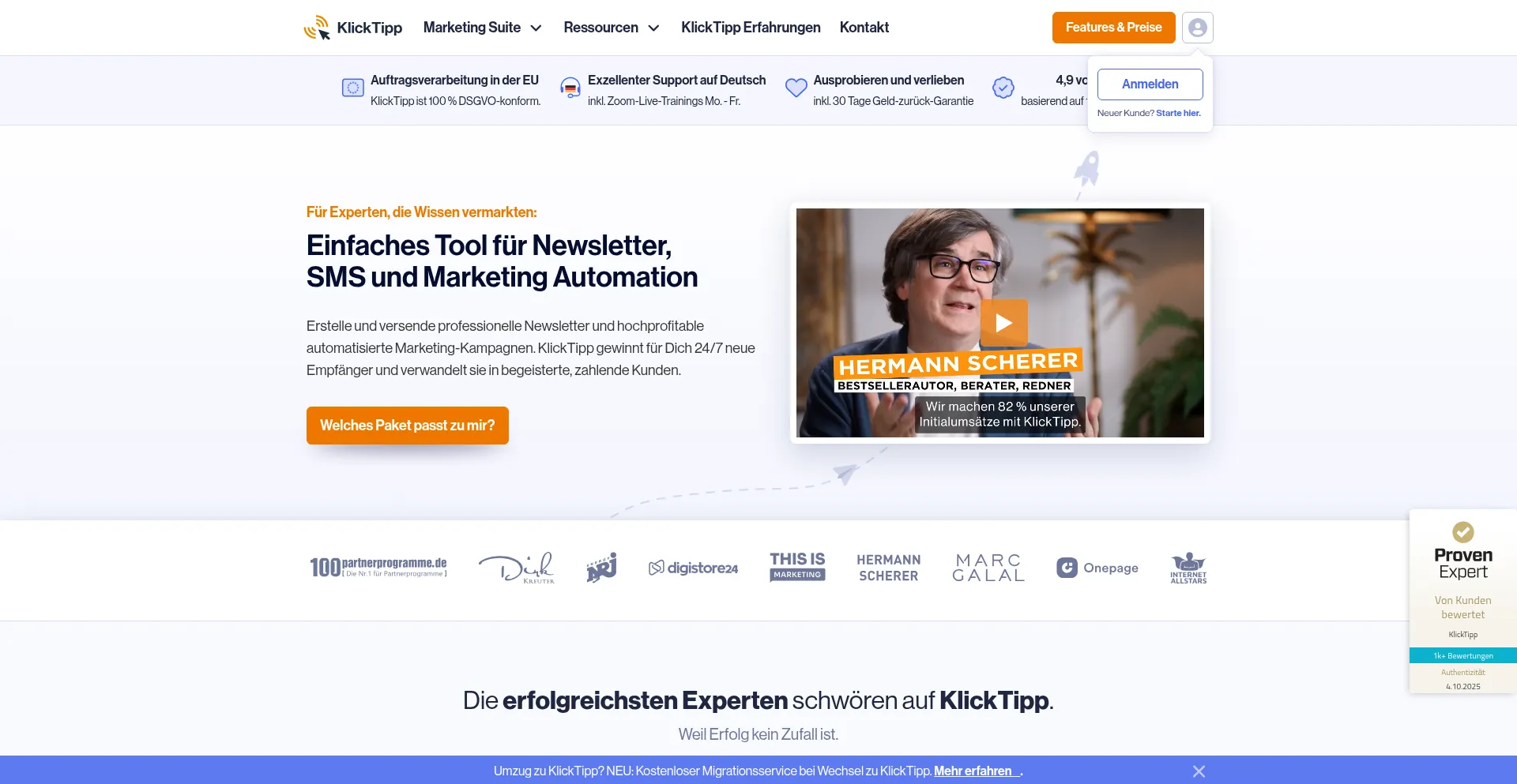 E-Mail Newsletter Tool, SMS & Marketing Automation mit KlickTipp. ✓ 100 % DSGVO-konform ✓ deutscher Support ✓ ProvenExpert: SEHR GUT
