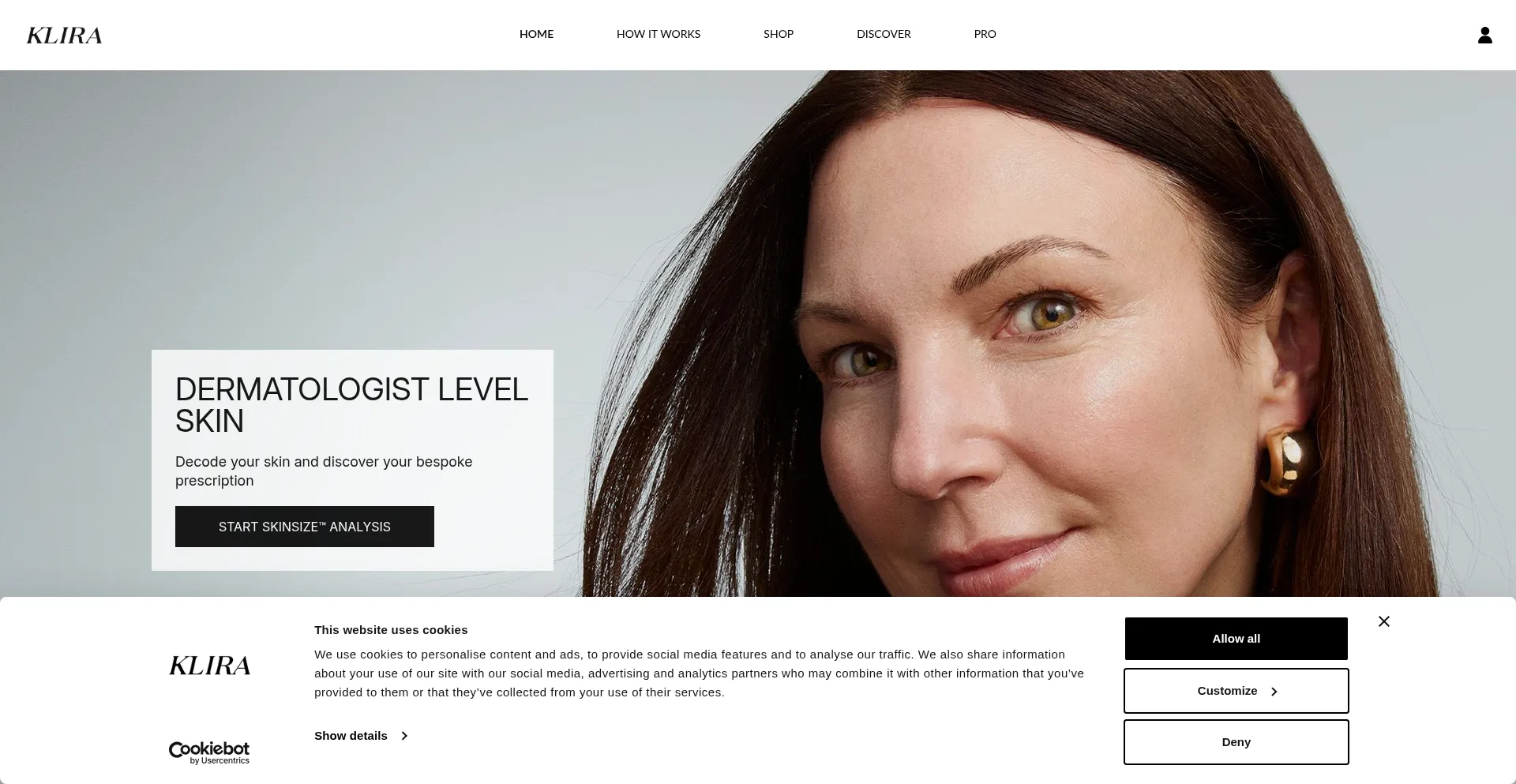 The website implements cookie consent mechanisms in compliance with privacy regulations such as GDPR or CCPA. This demonstrates that klira.skin adheres to data protection standards and provides users with control over personal data collection practices.