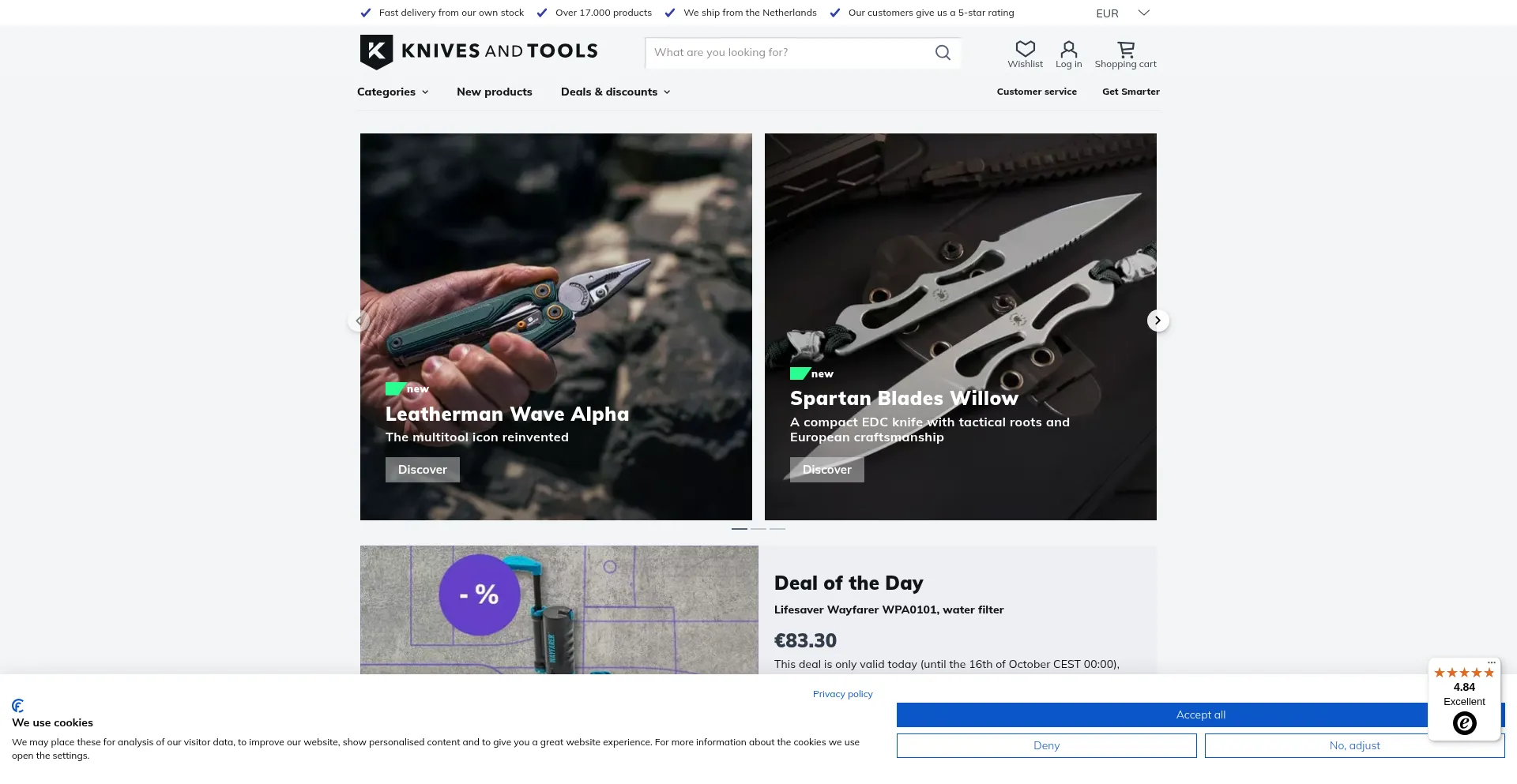 The specialist in kitchen knives, pocket knives, multitools, torches, binoculars and outdoor tools. Largest offer and the best prices for all top-brands!