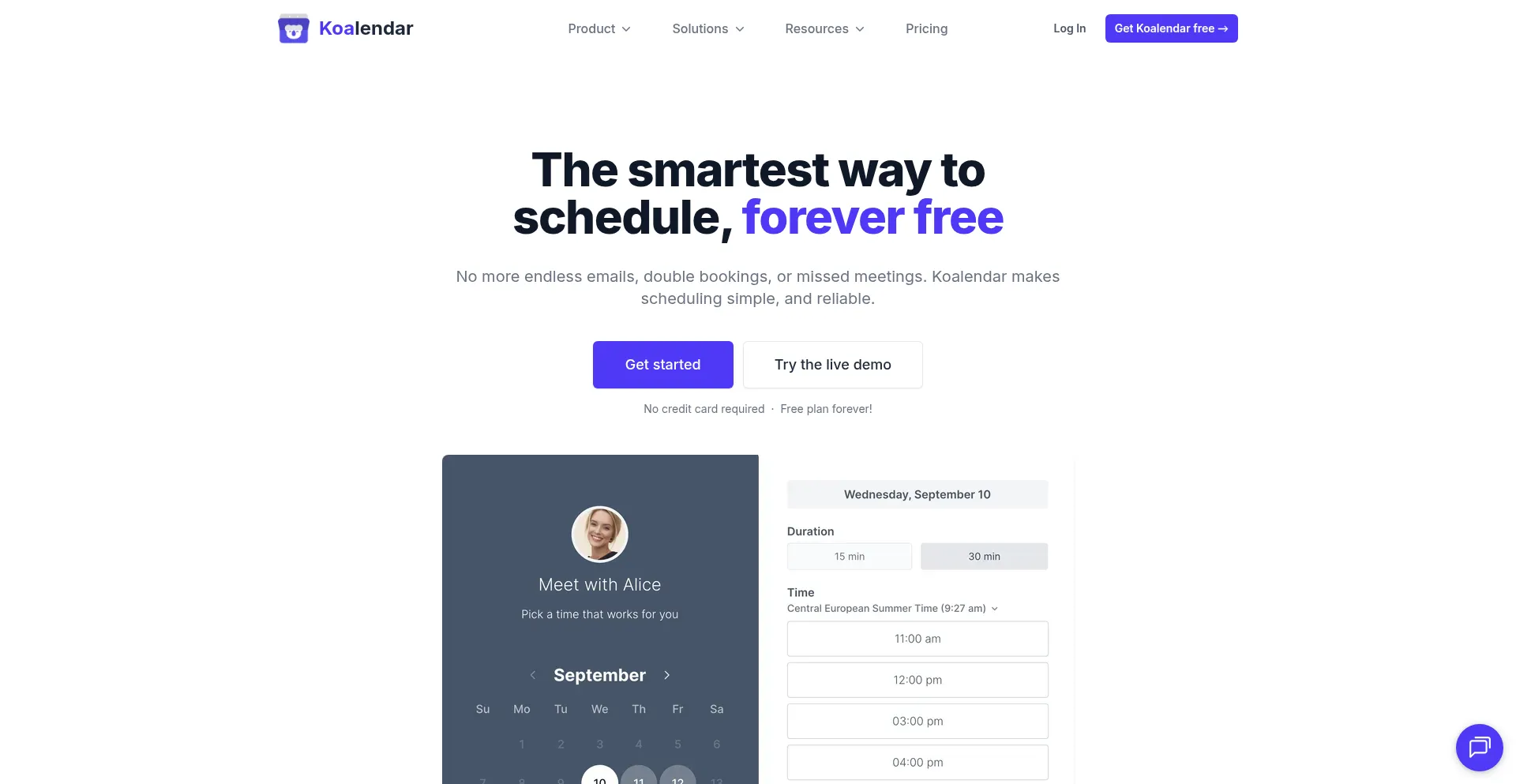 Simplify scheduling with Koalendar. Free forever plan with unlimited meetings, booking pages, and calendar sync—ideal for teachers, coaches, teams, and small businesses.