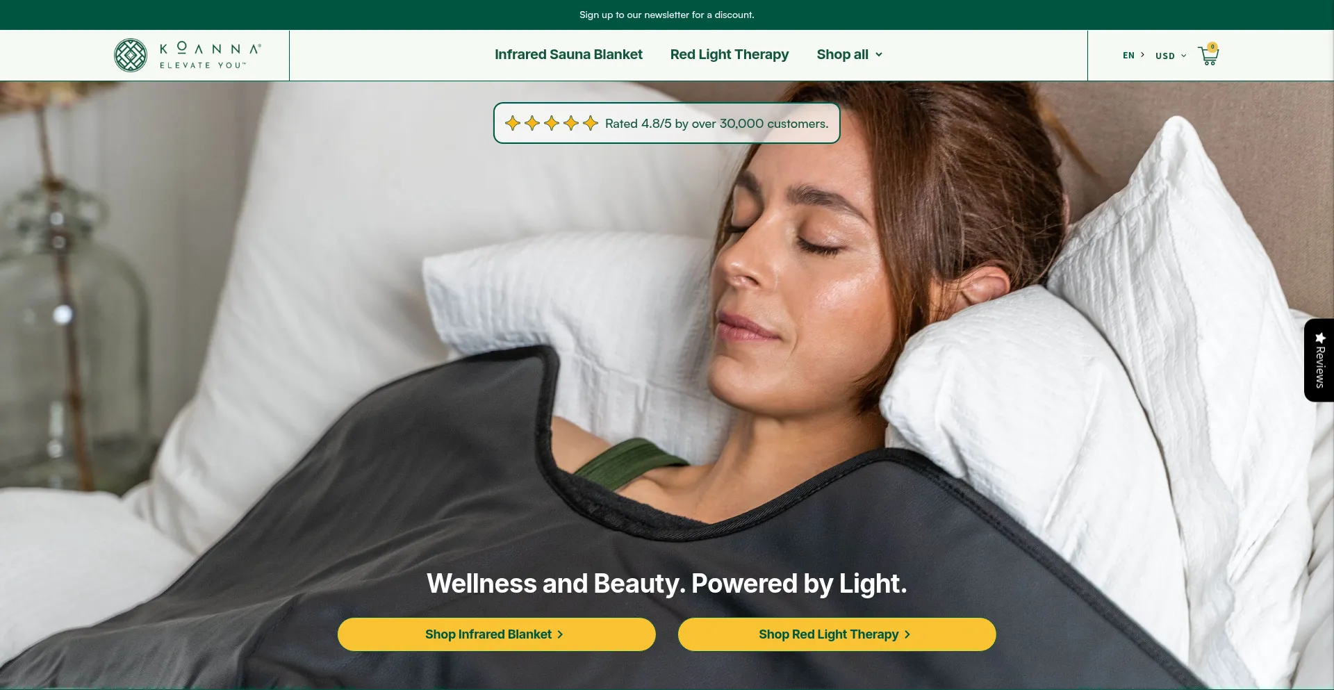 Discover KOANNA and experience the benefits of infrared heat and red light therapy | Infrared Sauna Blanket | LED Mask | Rated 4.8 on Trustpilot | Over 30,000 Satisfied Customers.