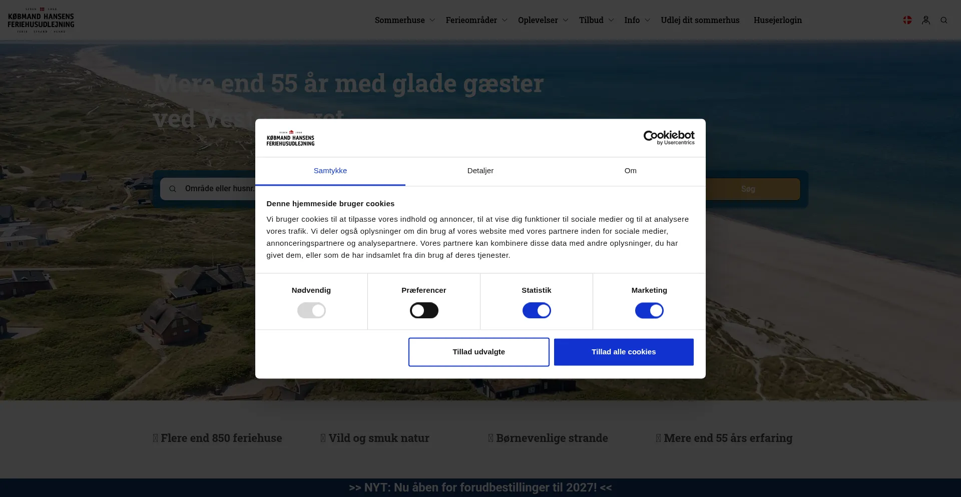 The website implements cookie consent mechanisms in compliance with privacy regulations such as GDPR or CCPA. This demonstrates that kobmand-hansen.dk adheres to data protection standards and provides users with control over personal data collection practices.