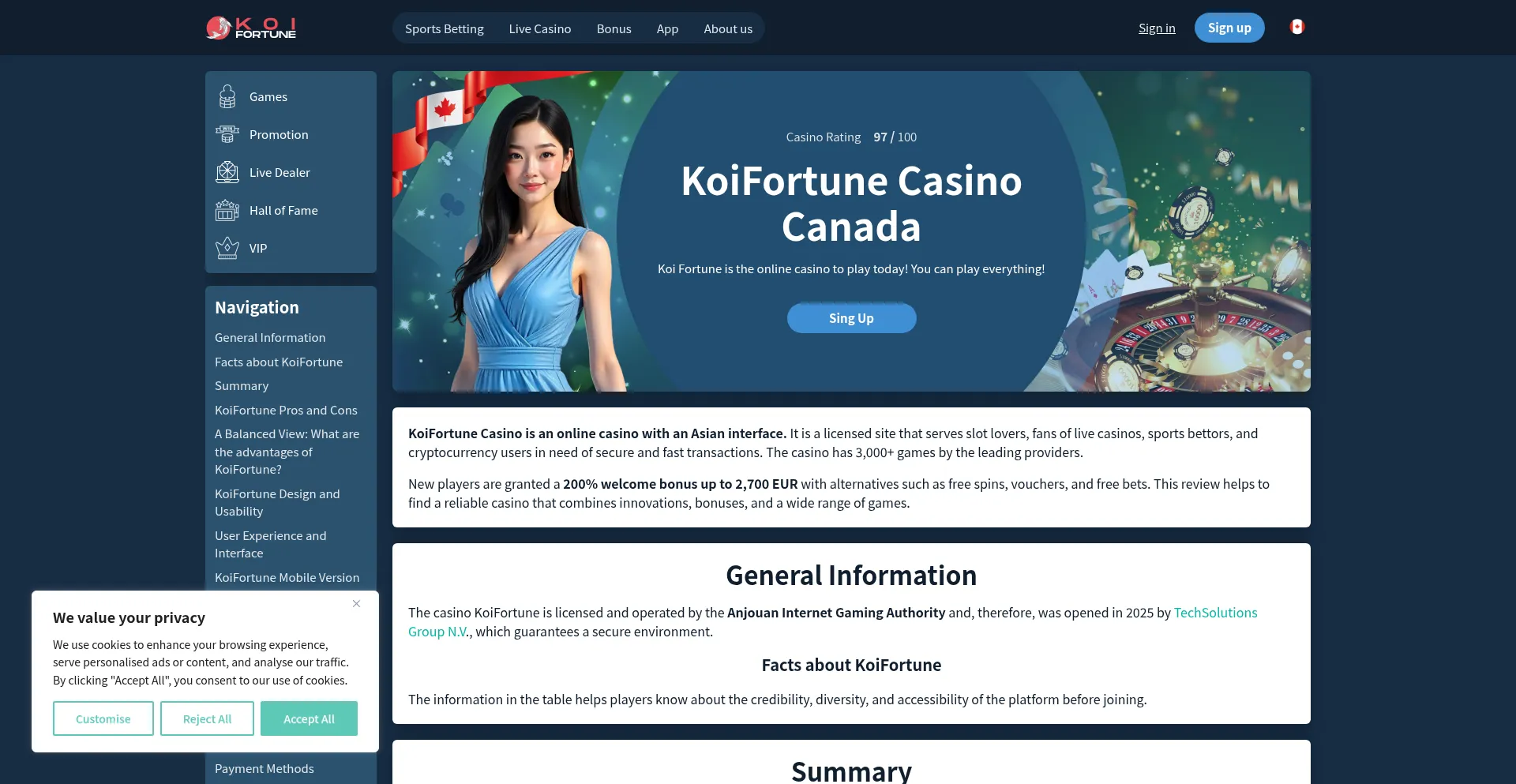 KoiFortune Casino Canada: Official Online Casino with a €100 Bonus for new players. Play Slots, Roulette & Blackjack for real money. Sign up fast!