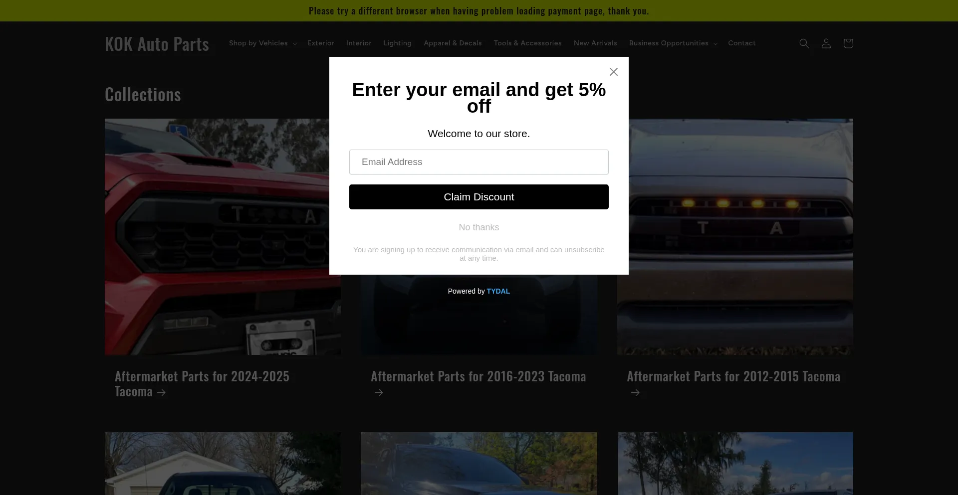 Our analyzer determines that website kokautoparts.com is using Shopify CMS. Shopify is a popular e-commerce platform, powering around 4.4% of websites globally.