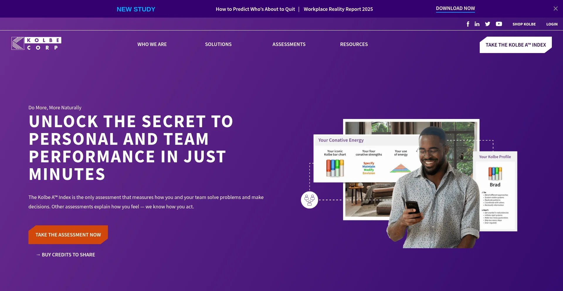 Kolbe is the only program that understands and builds on your instinctive strengths. Take the Kolbe A™ Index (Instinct Assessment) to understand your natural instincts today.