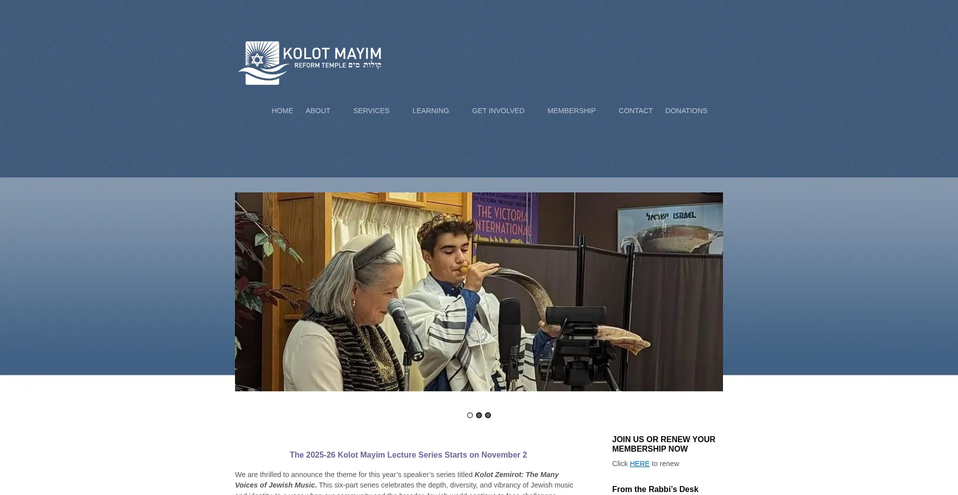 Welcome to Kolot Mayim Reform Temple! We are located in Victoria, British Columbia, Canada on beautiful Vancouver Island. Services are every week, alternating Fridays and Saturd...