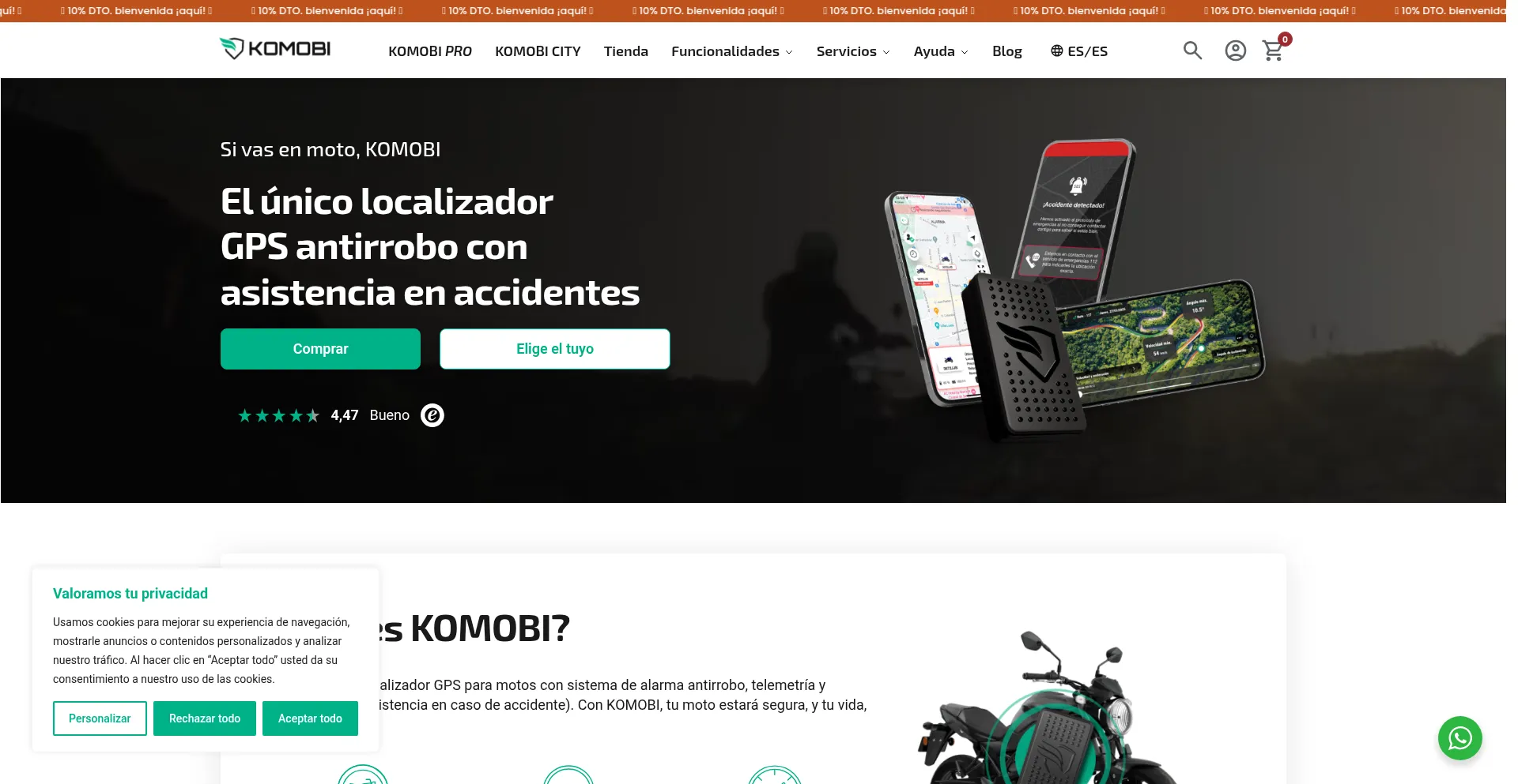 Bienvenido a KOMOBI. Aquí, tu seguridad lo primero, motero. Por ello, te ofrecemos mucho más que un localizador GPS para moto. ¡Descubre sus ventajas!