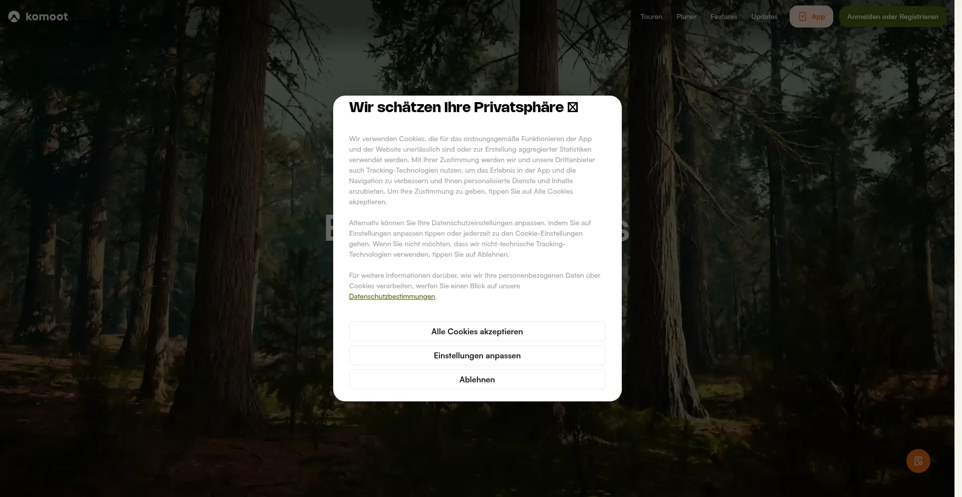 The komoot.de website implements data collection forms that may request personal information including names, email addresses, phone numbers, or other sensitive details. Users should verify the legitimacy of it and review privacy policies before submitting personal data.