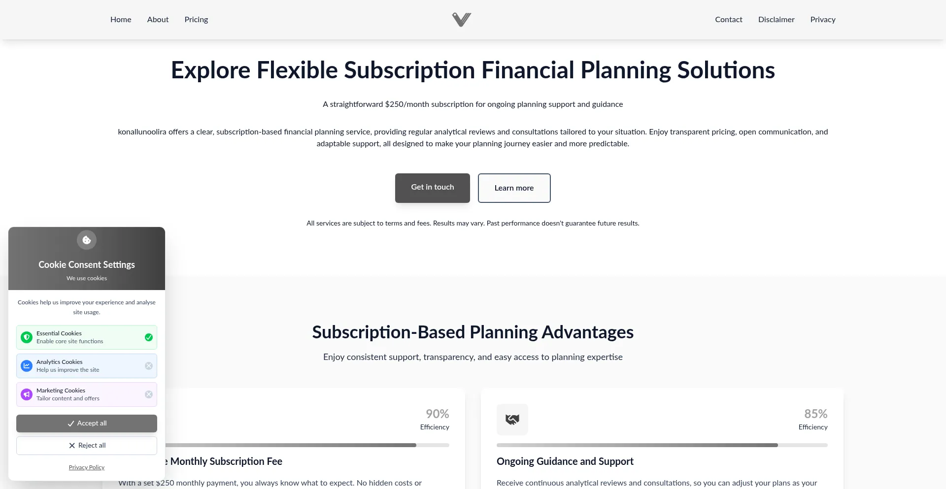 The website implements cookie consent mechanisms in compliance with privacy regulations such as GDPR or CCPA. This demonstrates that konallunoolira.com adheres to data protection standards and provides users with control over personal data collection practices.