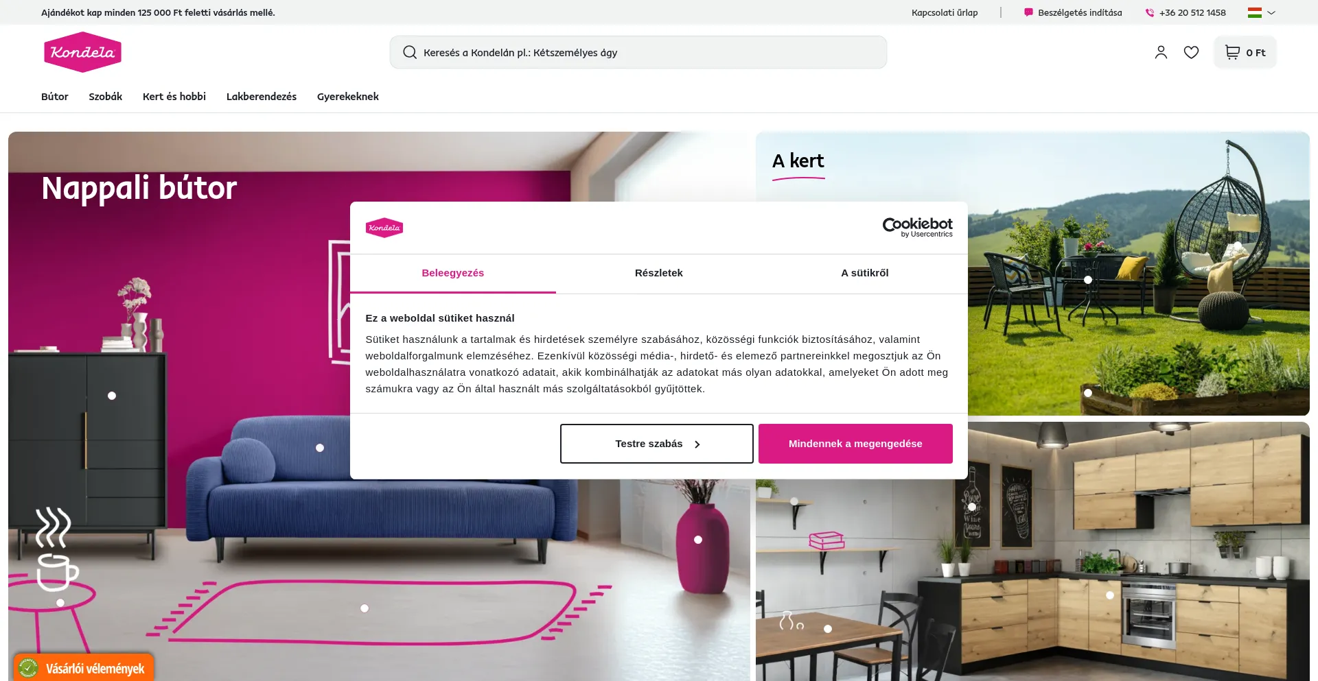The website implements cookie consent mechanisms in compliance with privacy regulations such as GDPR or CCPA. This demonstrates that kondela.hu adheres to data protection standards and provides users with control over personal data collection practices.