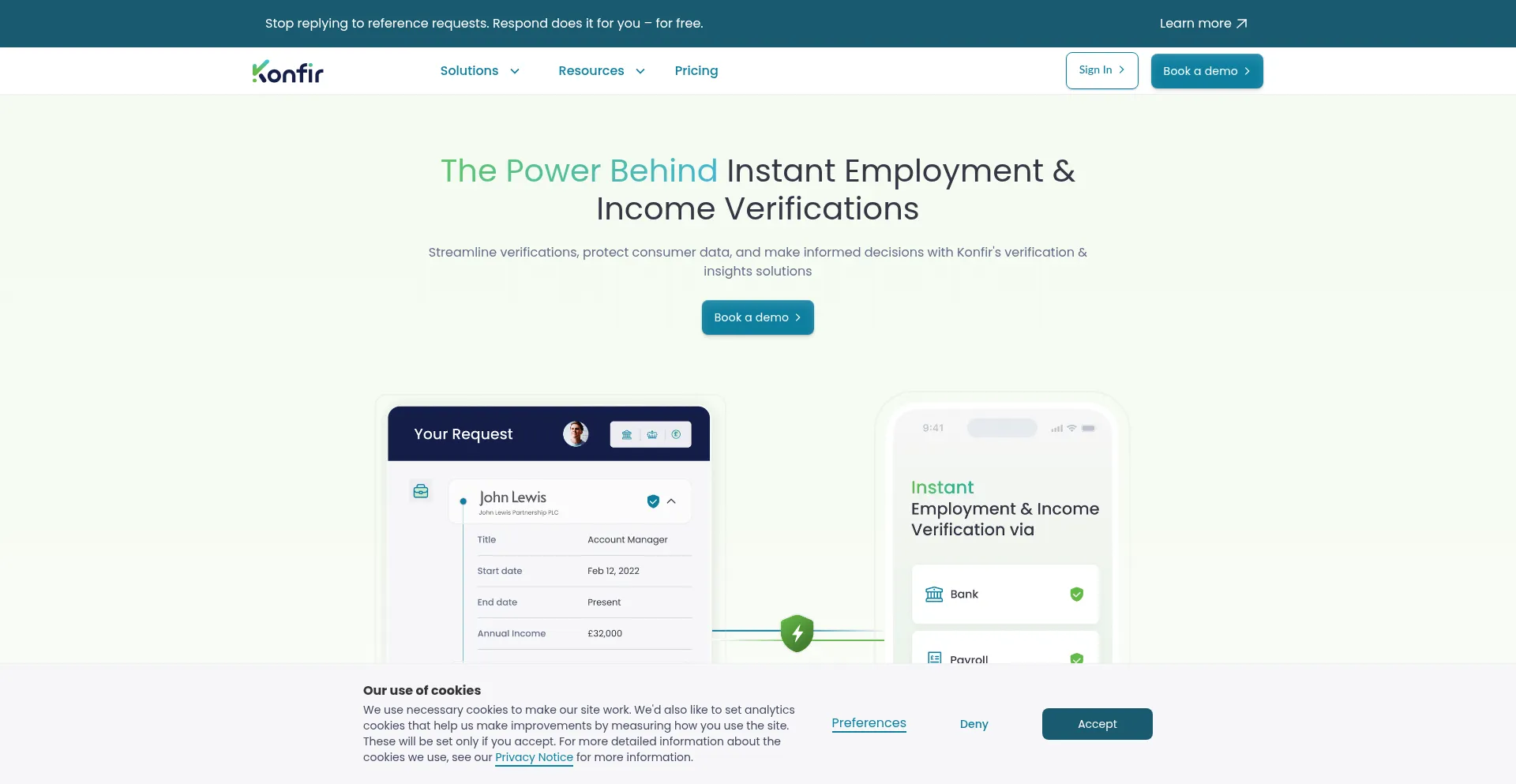 Discover Konfir’s innovative solutions for instant employment and income verification, designed to streamline processes and enhance security for your business. Leverage data f...