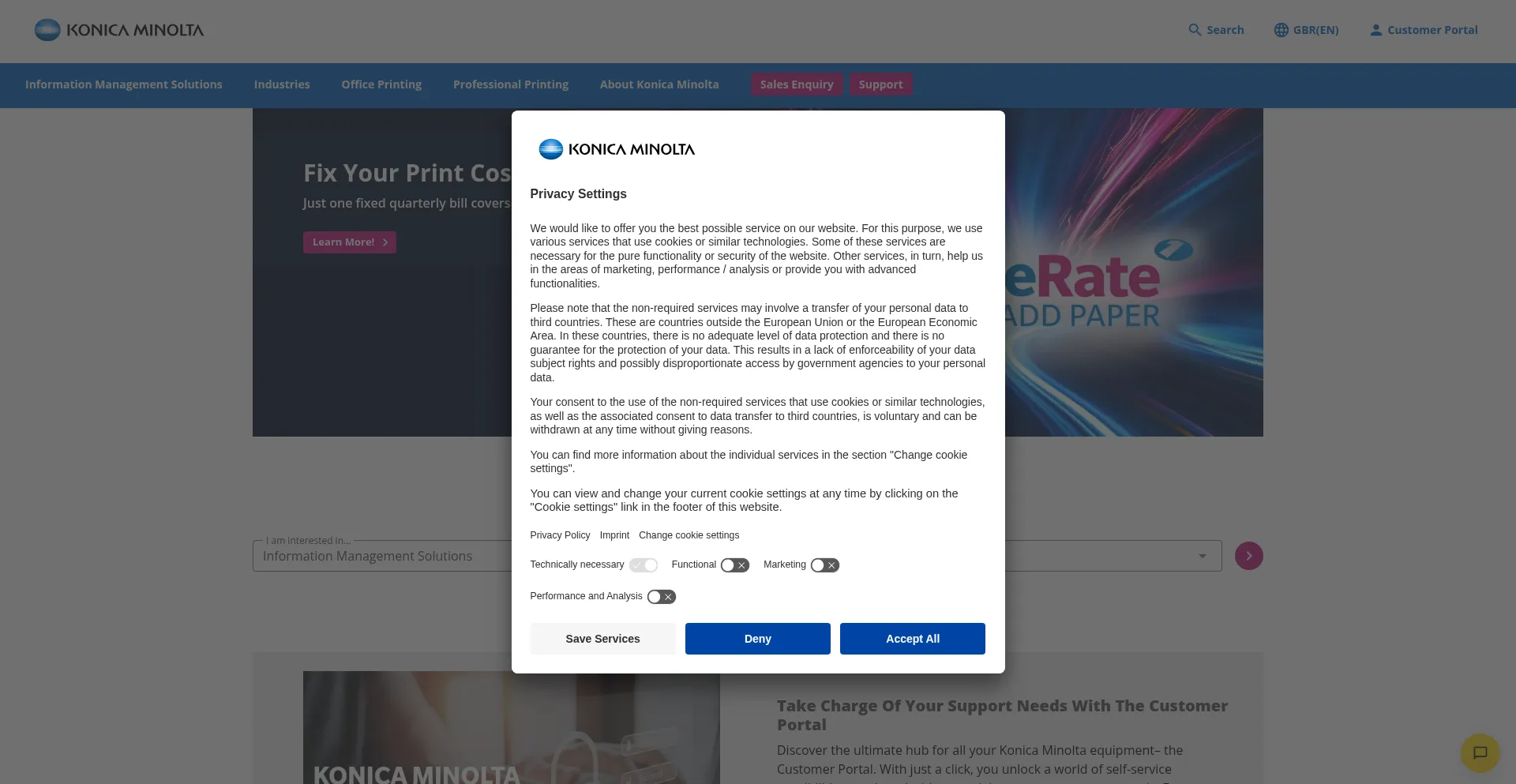 The website implements cookie consent mechanisms in compliance with privacy regulations such as GDPR or CCPA. This demonstrates that konicaminolta.co.uk adheres to data protection standards and provides users with control over personal data collection practices.