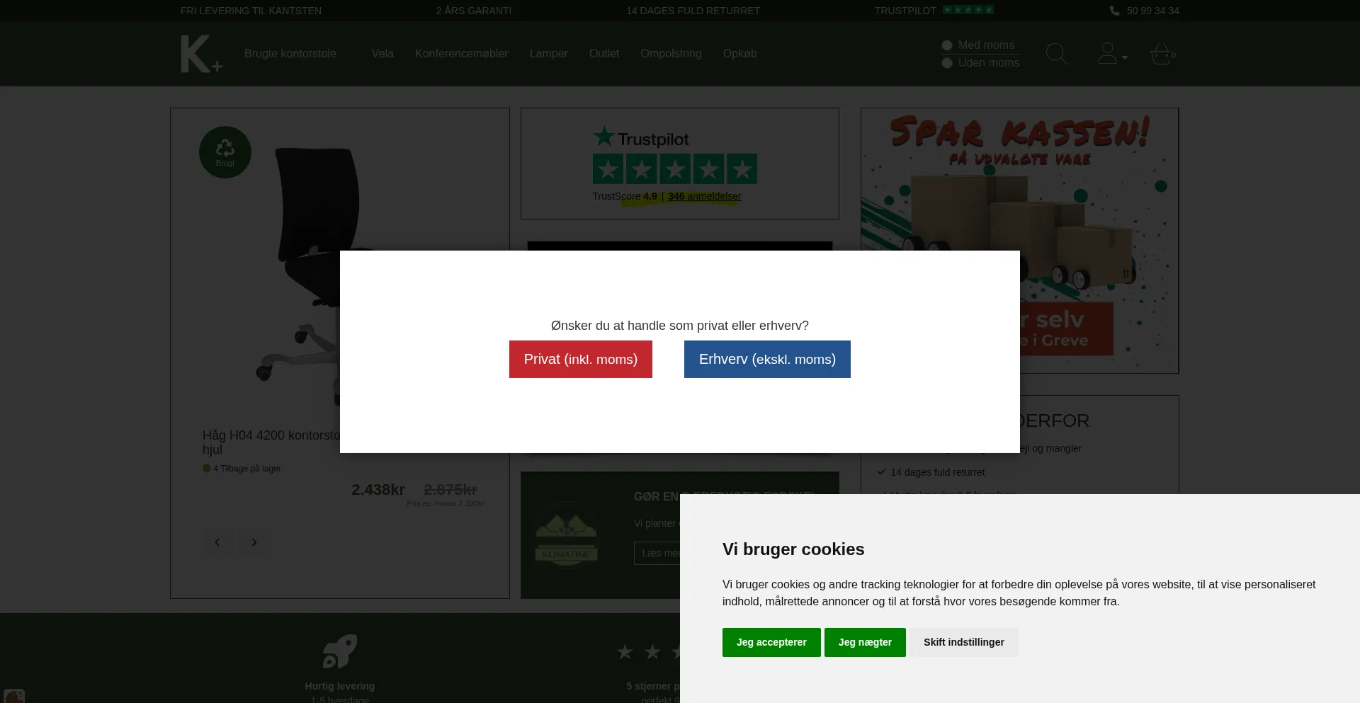 The website implements cookie consent mechanisms in compliance with privacy regulations such as GDPR or CCPA. This demonstrates that kontorplus.dk adheres to data protection standards and provides users with control over personal data collection practices.